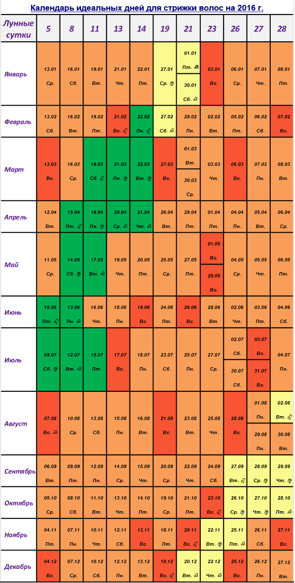 Календарь дней идеальных для стрижки волос на 2016 г.